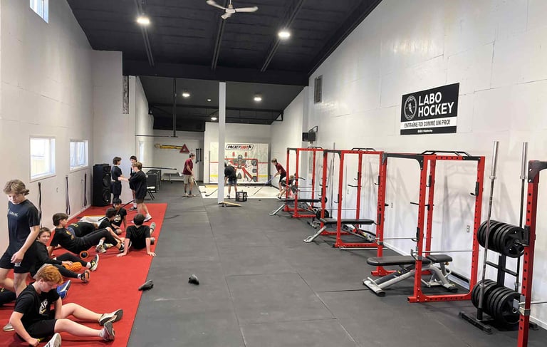 Le centre d’entraînement Labo Hockey, situé au deuxième étage de l’aréna du Collège Clarétain à Victoriaville, offre un espace idéal pour développer toutes les facettes du jeu en dehors de la glace. Ce grand local est spécialement aménagé pour le travail technique, la coordination et les habiletés individuelles.